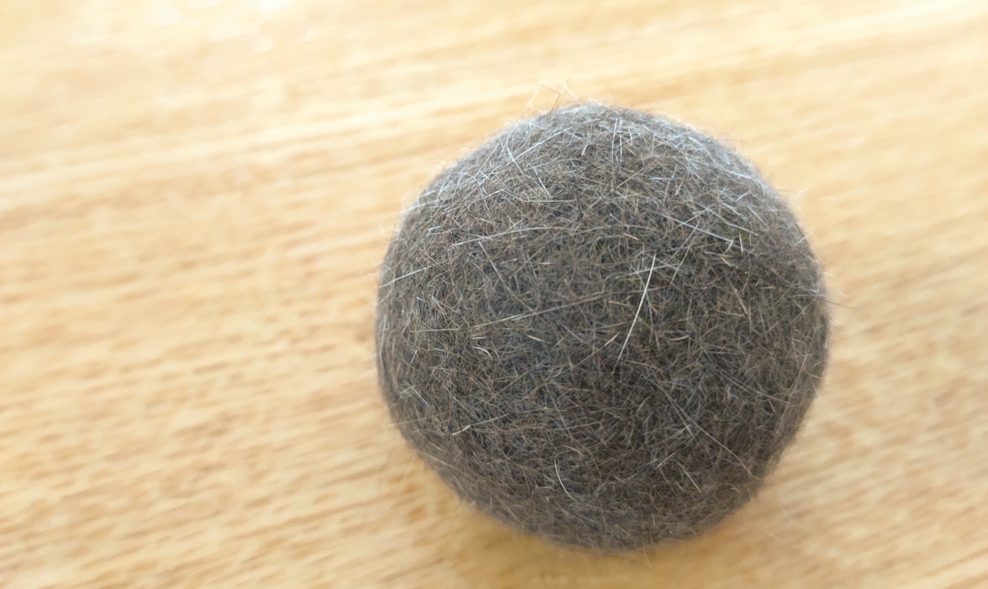 ブラッシングをして集めた毛。こんなに簡単にかわいいボールができました。