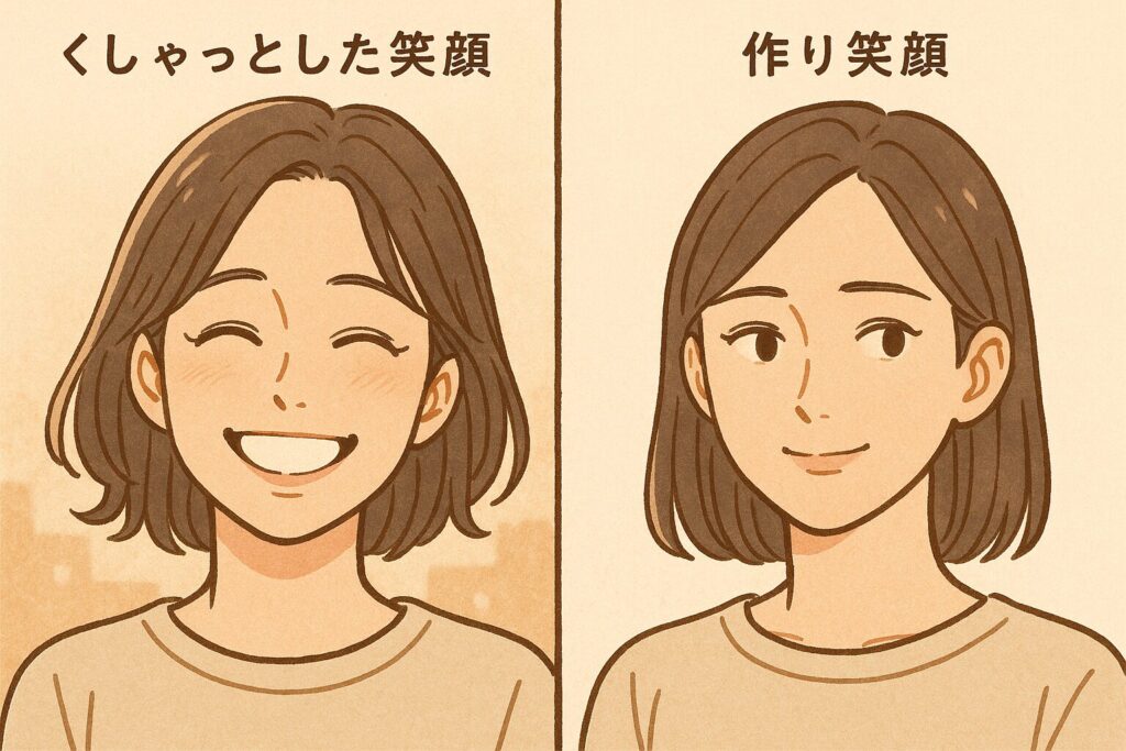 「くしゃっとした笑顔」とは、口角だけが上がる“作り笑顔”とは違い、