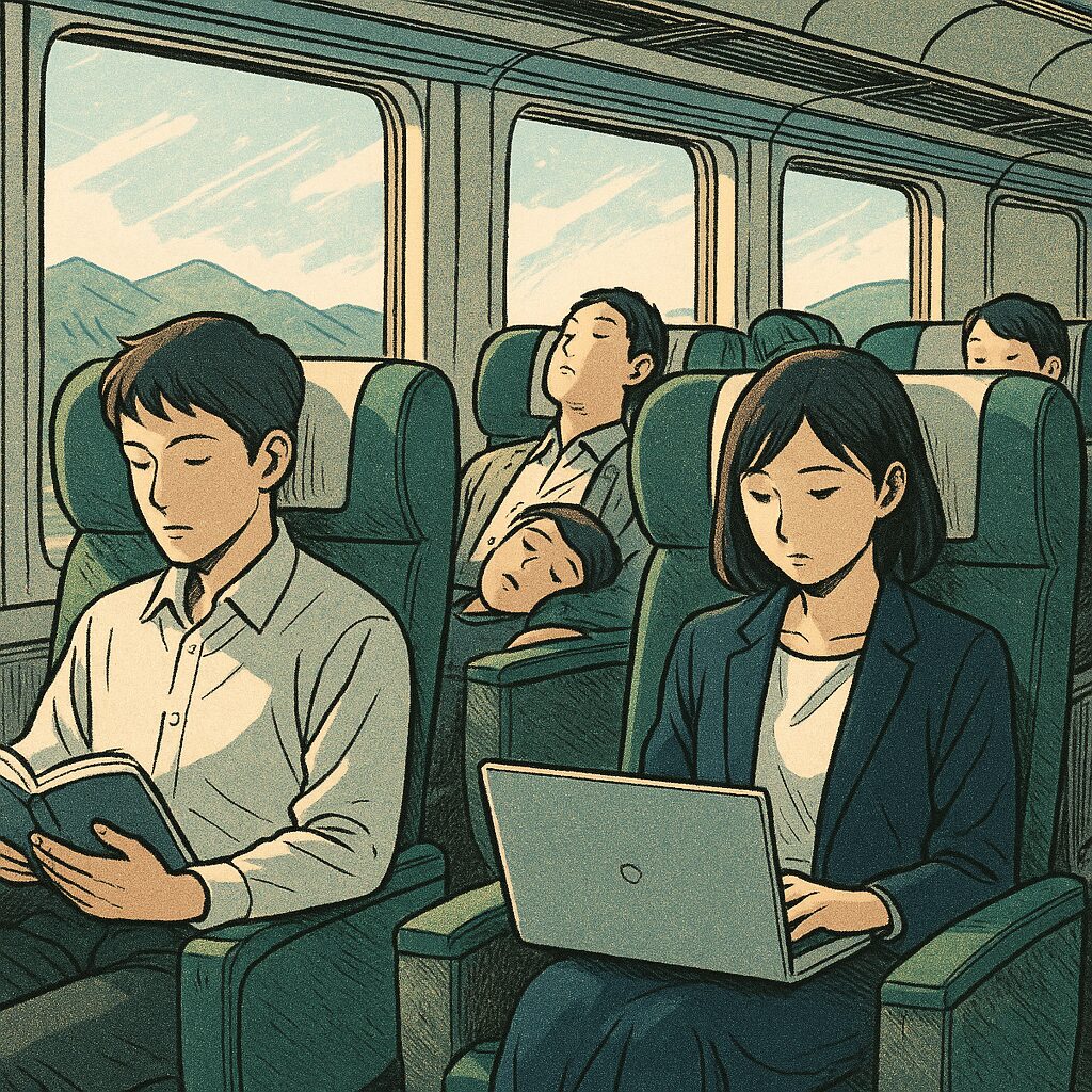 会話もほとんどなく、車内全体が「それぞれの時間を尊重している」ような空気。