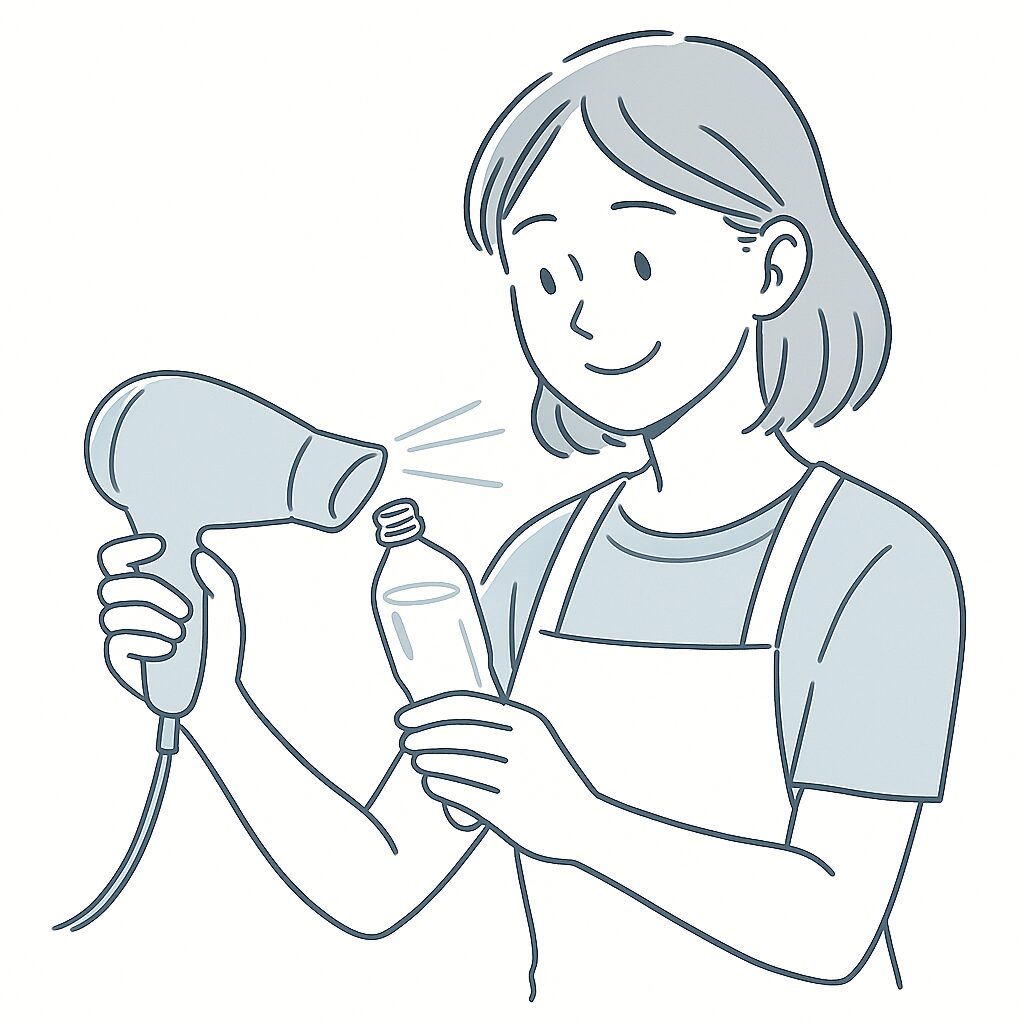 ドライヤーの冷風を30秒〜1分ほどボトルの口にあてるだけで、